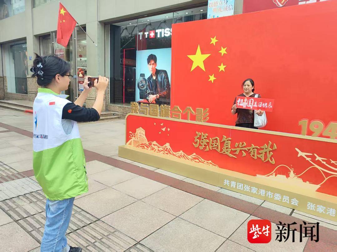 傍晚时分的张家港步行街,国旗招展,人流如织。志愿者们穿梭在街头,热情邀请游客参与“我与国旗合影”活动。他们手持相机,耐心地为一家老少、三五好友定格与鲜艳国旗同框的温馨瞬间。一位来自南京的游客感慨:“志愿者帮我们拍了一张全家福,背景是飘扬的国旗,这个国庆记忆特别有意义!”欢声笑语中,志愿者的身影与鲜艳的国旗相互映衬,成为节日街头最动人的画面。